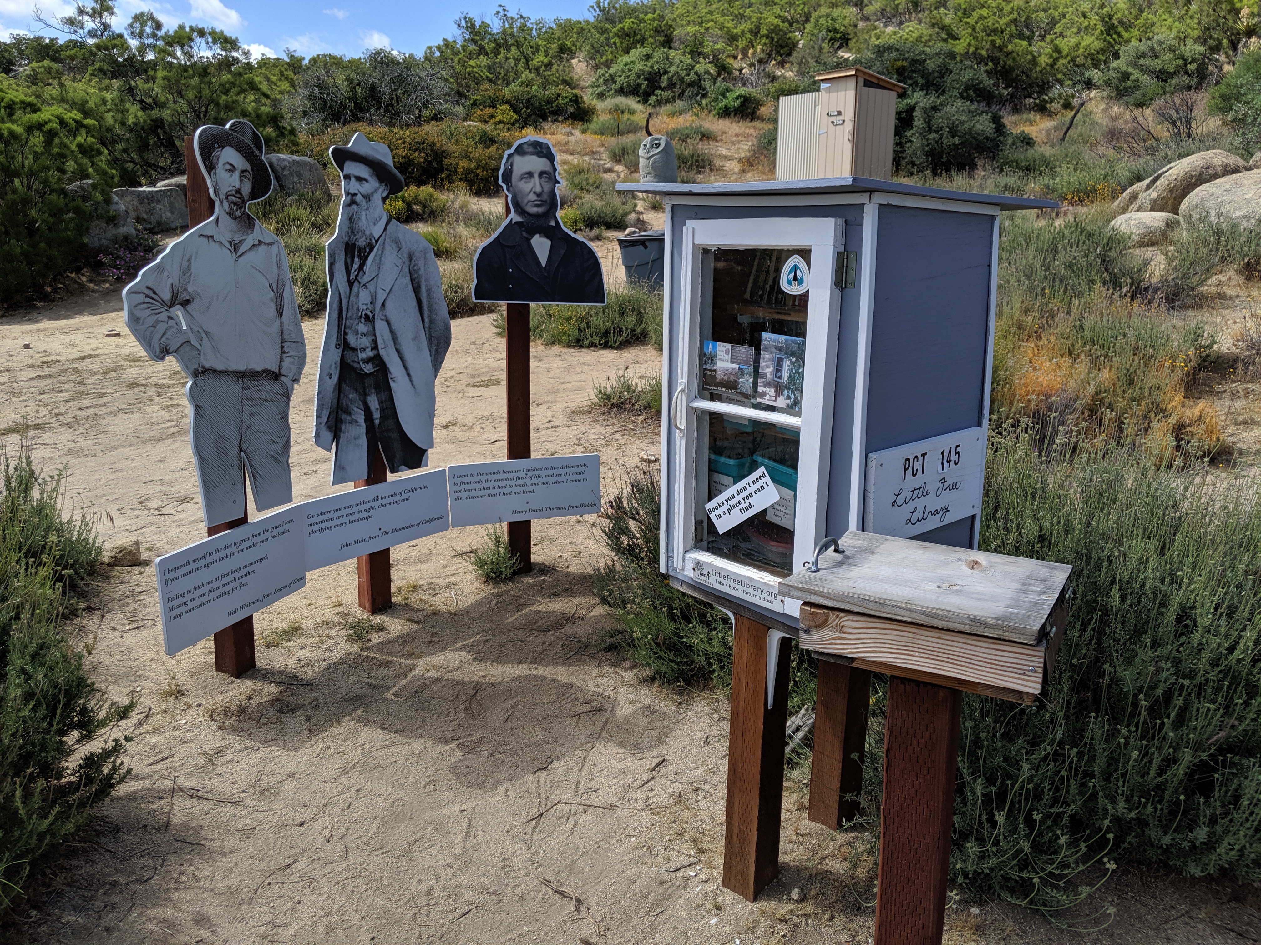 Another highlight was staying at Mary’s at mile 145. She has a wonderful camping spot with water, a privy, and John Muir-themed reading material in a Little Free Library. The phrase on the book cabinet made me smile: “Books you don’t need in a place you can’t find.”