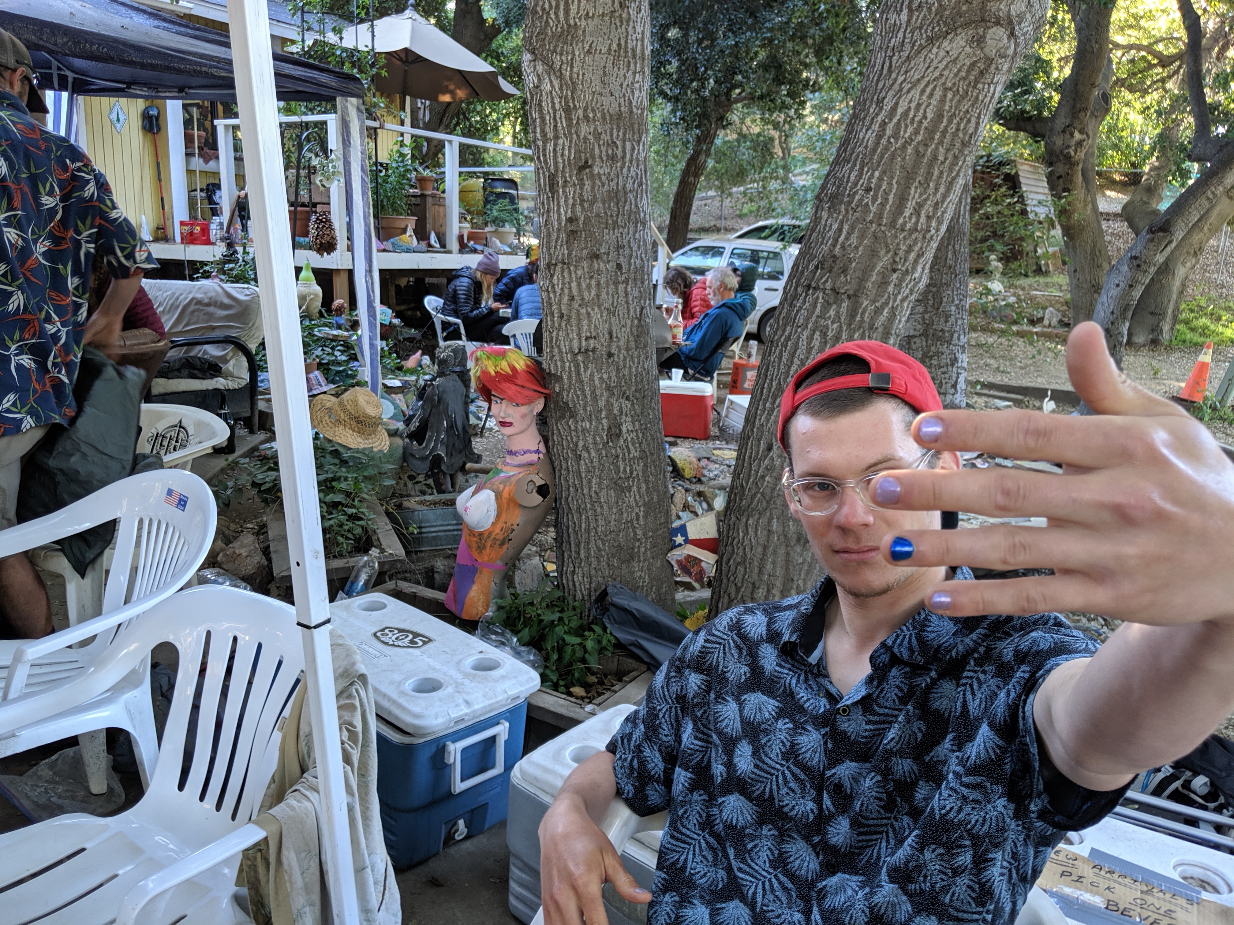 We cruised through the 23ish miles to Green Valley and instantly got a hitch to the convenience store near Casa De Luna. After a quick purchase of beer and snacks, we marched toward Casa. There is no question about which house is Casa De Luna. After passing a few porta potties out front we saw a group of twenty some Hawaiian shirt-clad hikers resting on broken couches and makeshift chairs. Most were smoking, drinking, or eating. All were thoroughly enjoying themselves.
