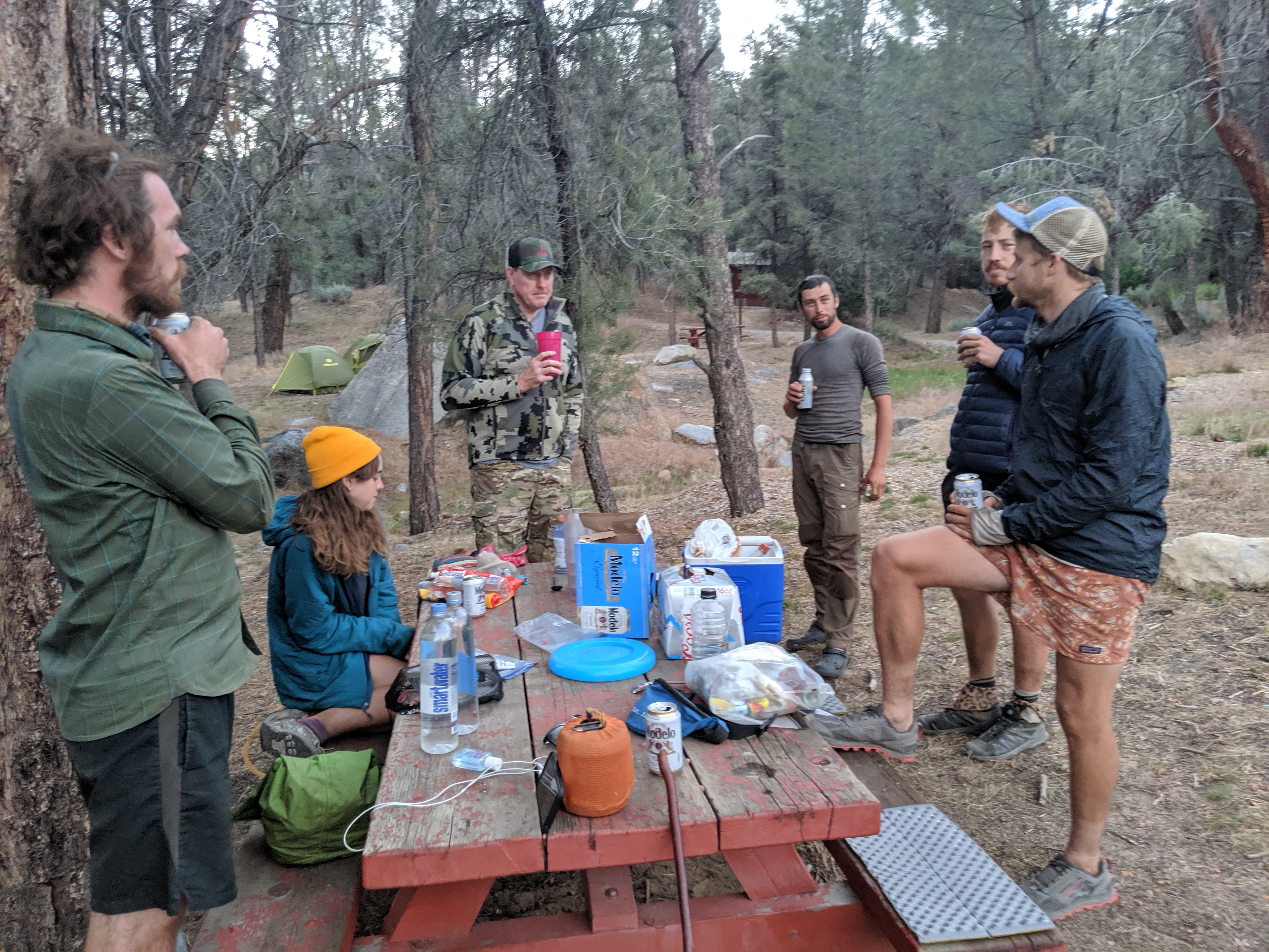 I wrote yesterdayâs entry at around 6 PM. Shortly after finishing, a guy driving a truck parked on the road beside Chimney Creek Campground. He walked up to us, introduced himself as the owner of a nearby cabin. He asked if we needed anything and Toucan semi-jokingly responded with âbeer.â About an hour later he was back with a couple dozen beers and a fifth of vodka.