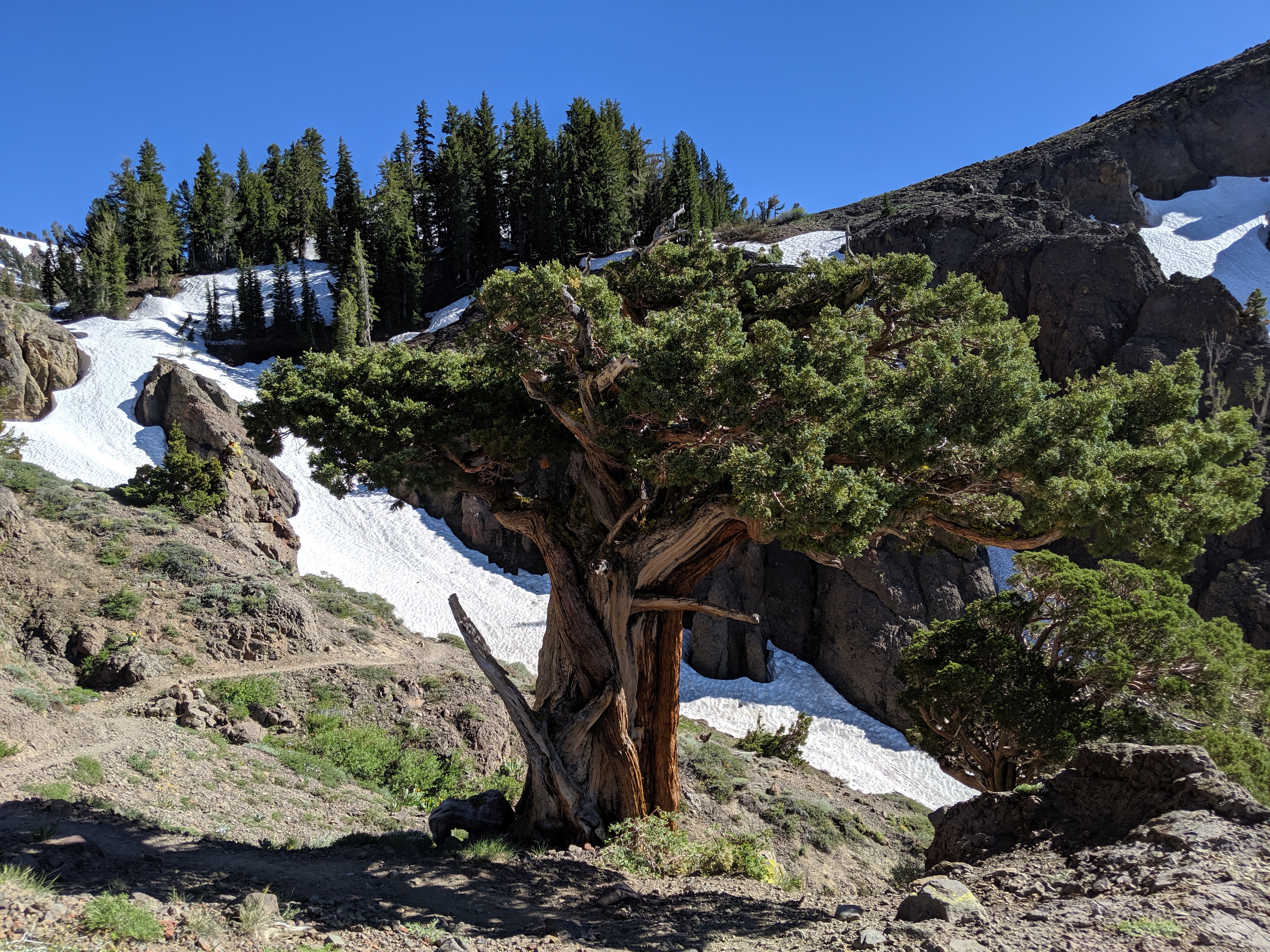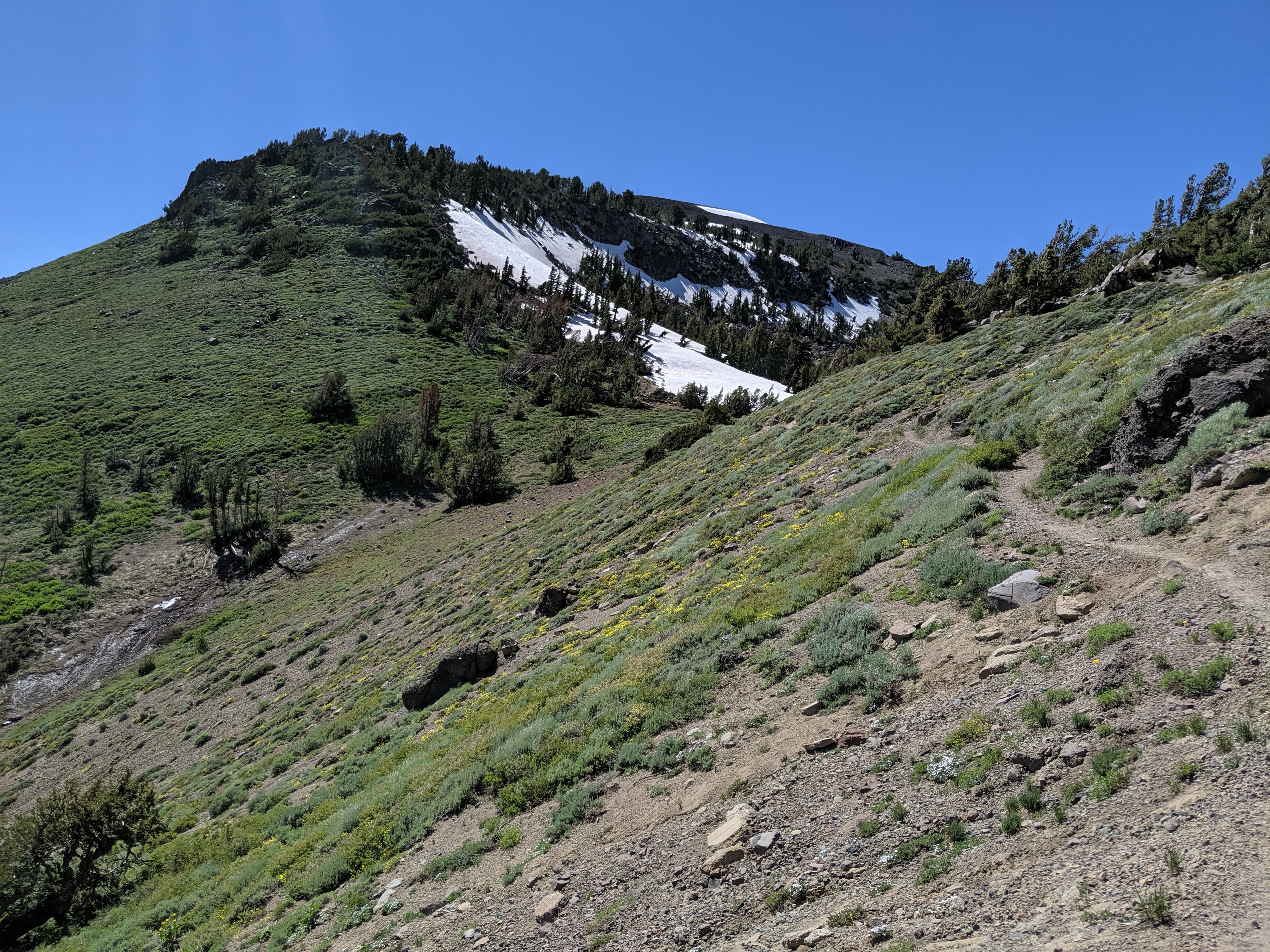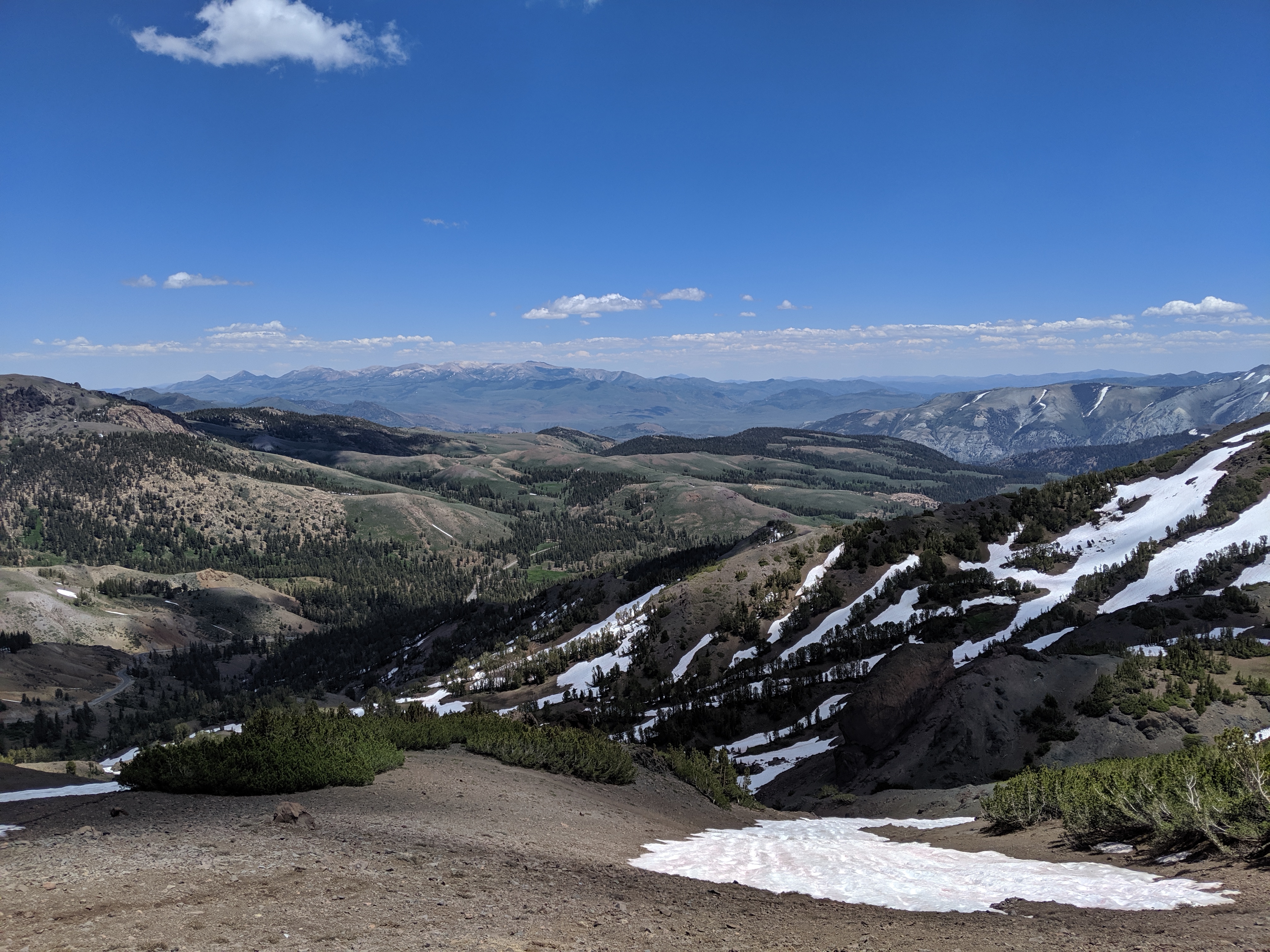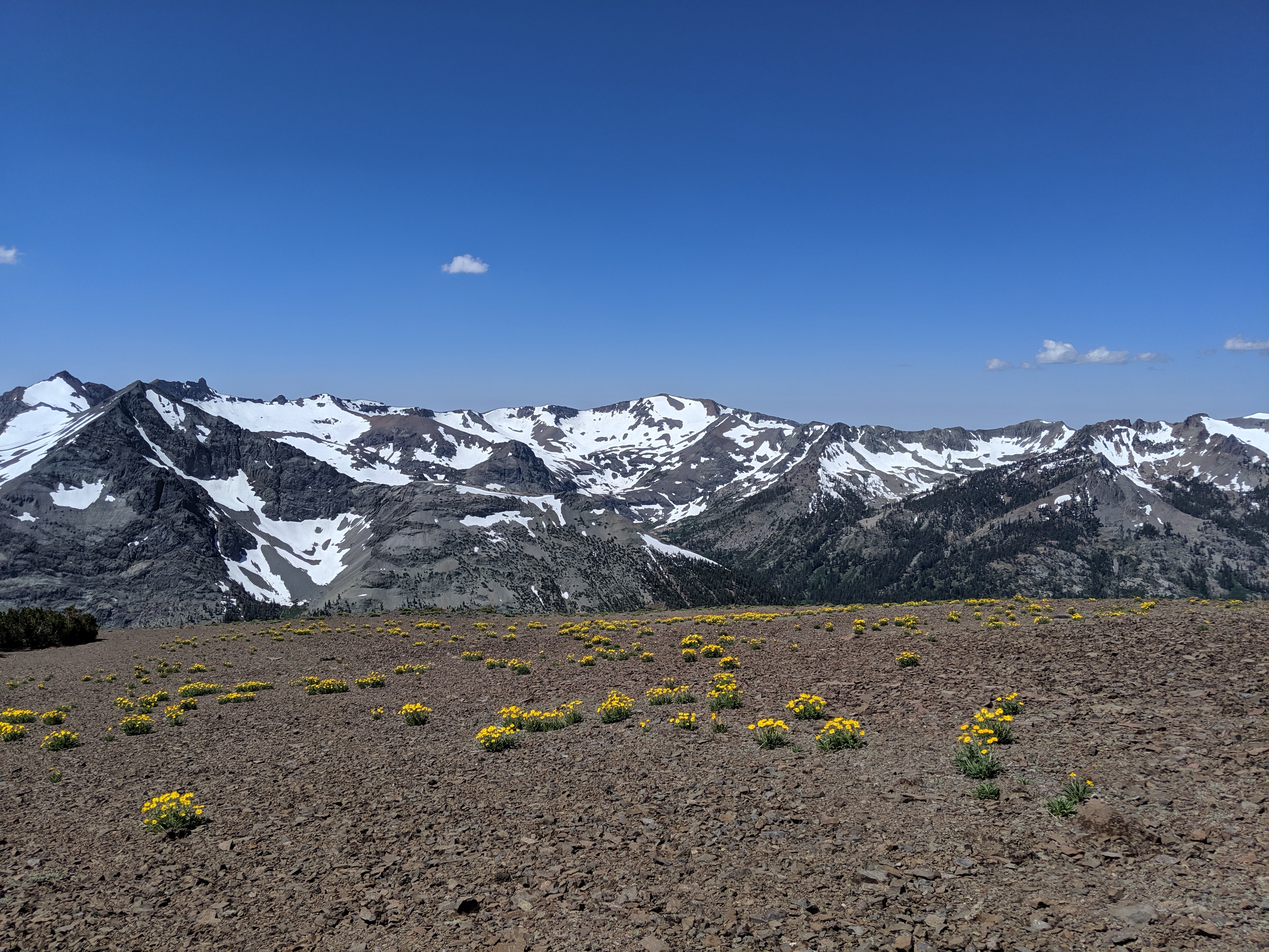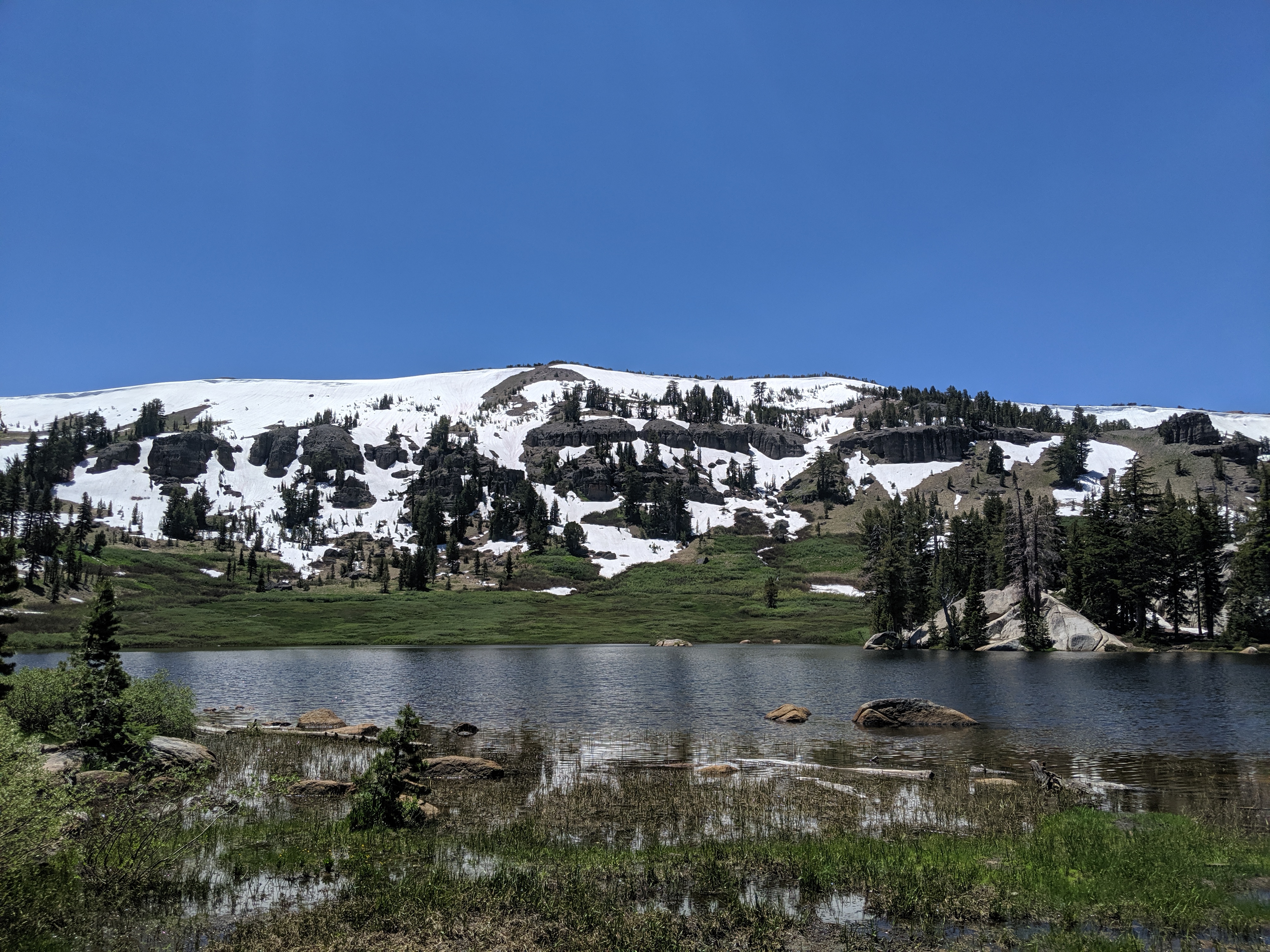 The rest of the day was as predictedārelatively mellow grades, no water crossings requiring getting wet, and amazing views of the waning mountains and retreating snow. I deliberately went slow and stopped shortly after 4 PM just so I wouldnāt be too bored tomorrow. My plan is to hike to just a couple of miles away from HWY 50, and then hitch into South Lake Tahoe early on Thursday.