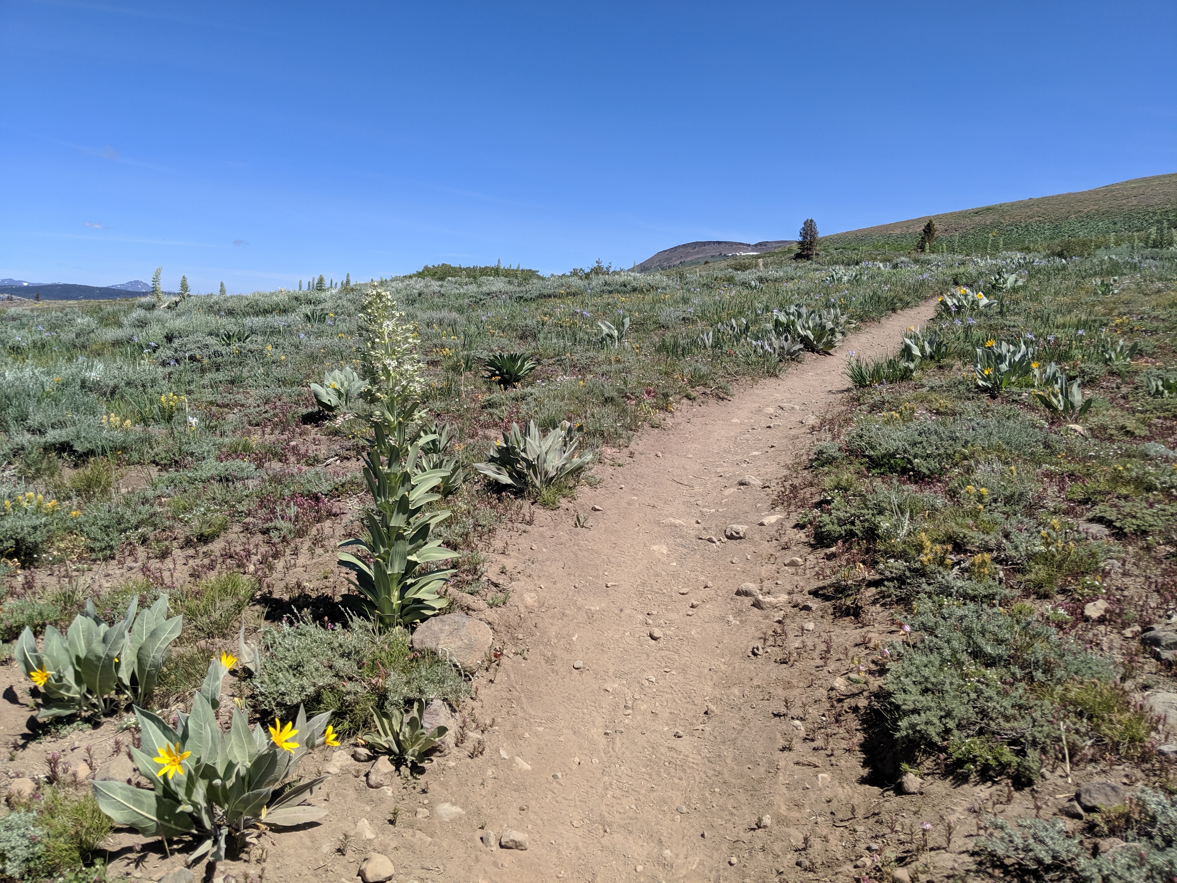 Main Photo: The windy, exposed trail leading to Sonora Pass on June 14.