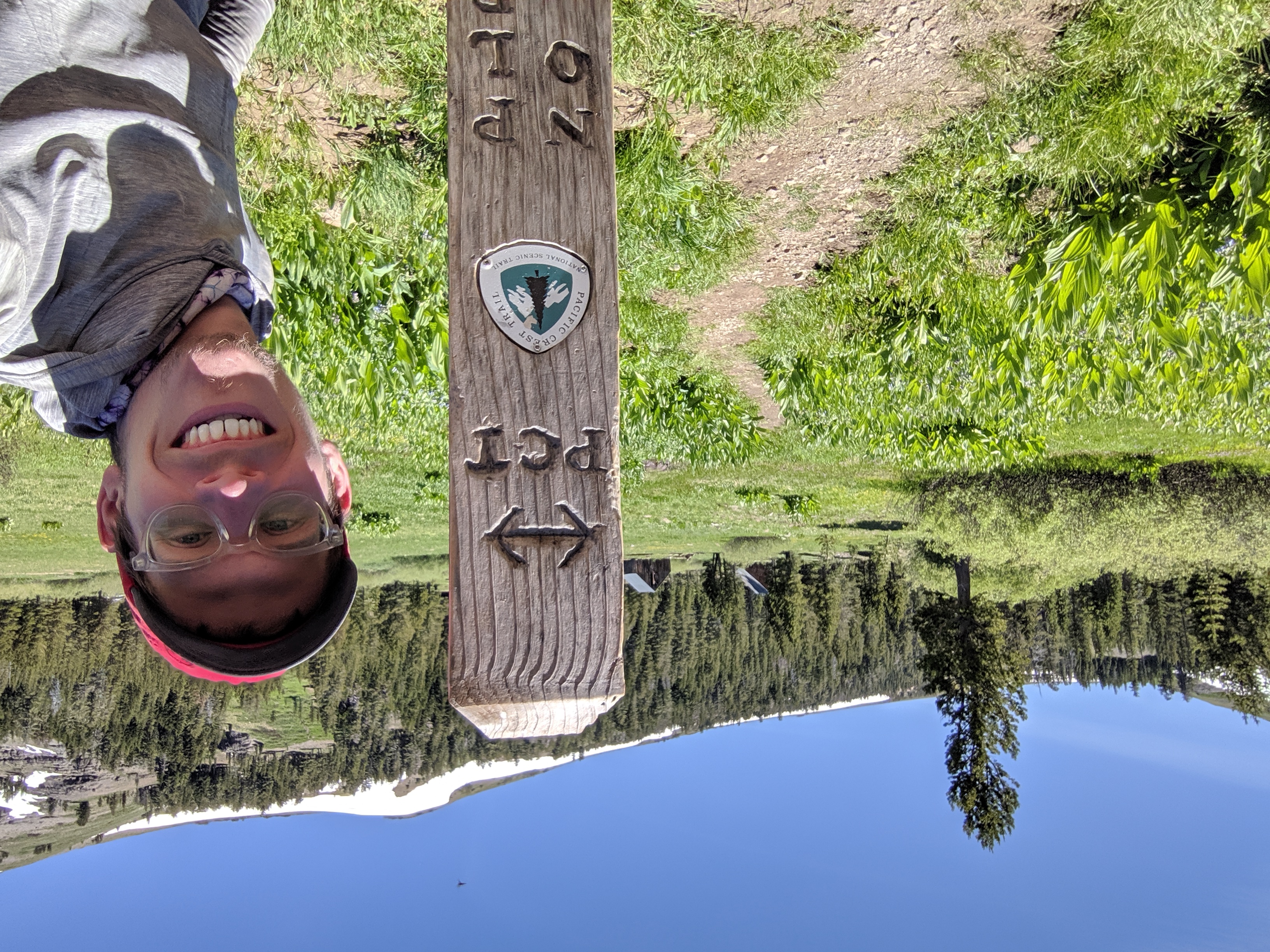 The rest of the day was spent cruising through gentle hills approaching Lake Tahoe. The PCT rejoined the Tahoe Rim Trail (TRT), a trail I did in 2017. That trip was what convincwd me to someday hike the PCT. I specifically remember the section where the TRT connects and overlaps with the PCT right after Round Lake. I took a photo of that junction, just as I did two years ago.
