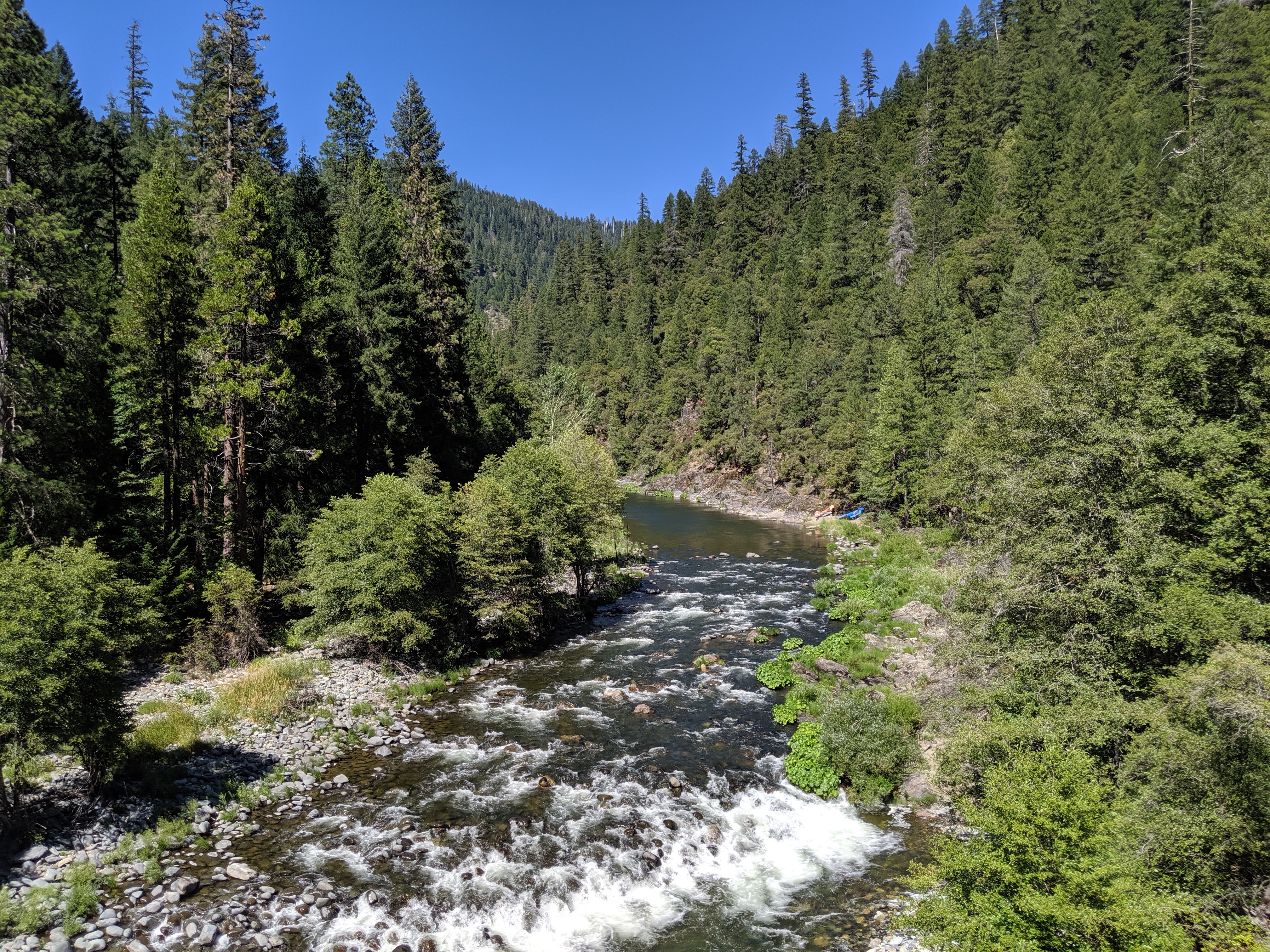 I’m sweating a ton, my clothes are filthy, and my legs are caked in dirt. This is after bathing my legs in the Middle Fork Feather River earlier, which is a gorgeous river. The grime is unavoidable though. When you’re walking on dirt (almost) all day, that dirt eventually starts to walk on you.