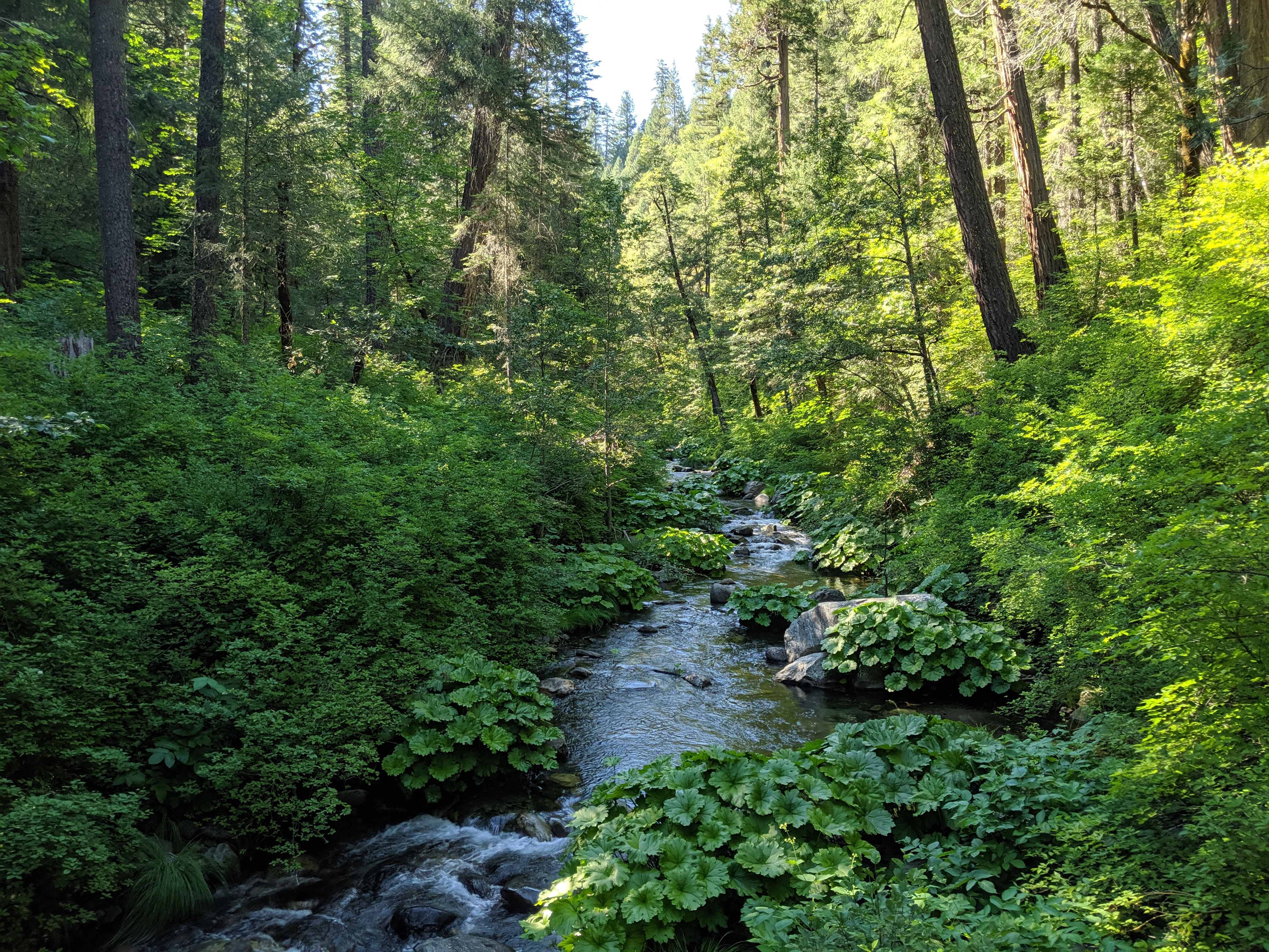 One part of today’s hike was passing Bear Creek (not the one from the Sierra) and some streams down trail that fed into it. It was kinda crazy because as soon as I walked over its bridge I was immersed in a dank cloud of cool air and earthy scents. It reminded me on the Pirates of the Caribbean ride at Disneyland. The air was heavy and damp, and it cooled me off instantly.