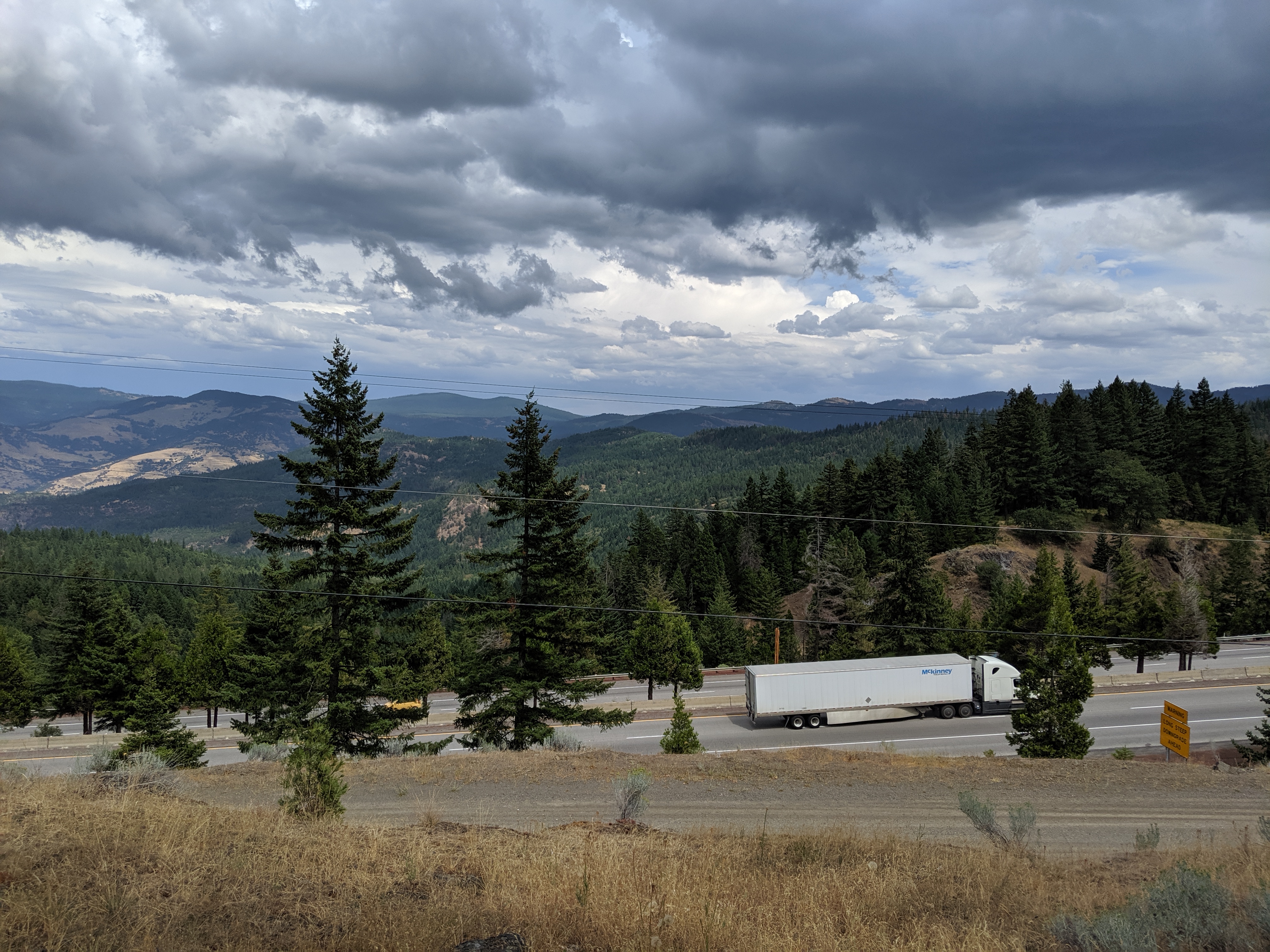 The trail leaves Callahanās on on Old 99 across I-5. It was weird being around such constant traffic for the first time in a while. As I started hiking I saw the weather was looking pretty nasty. With my intermittent mobile reception I confirmed my worries: chances of thunderstorms tonight and tomorrow.