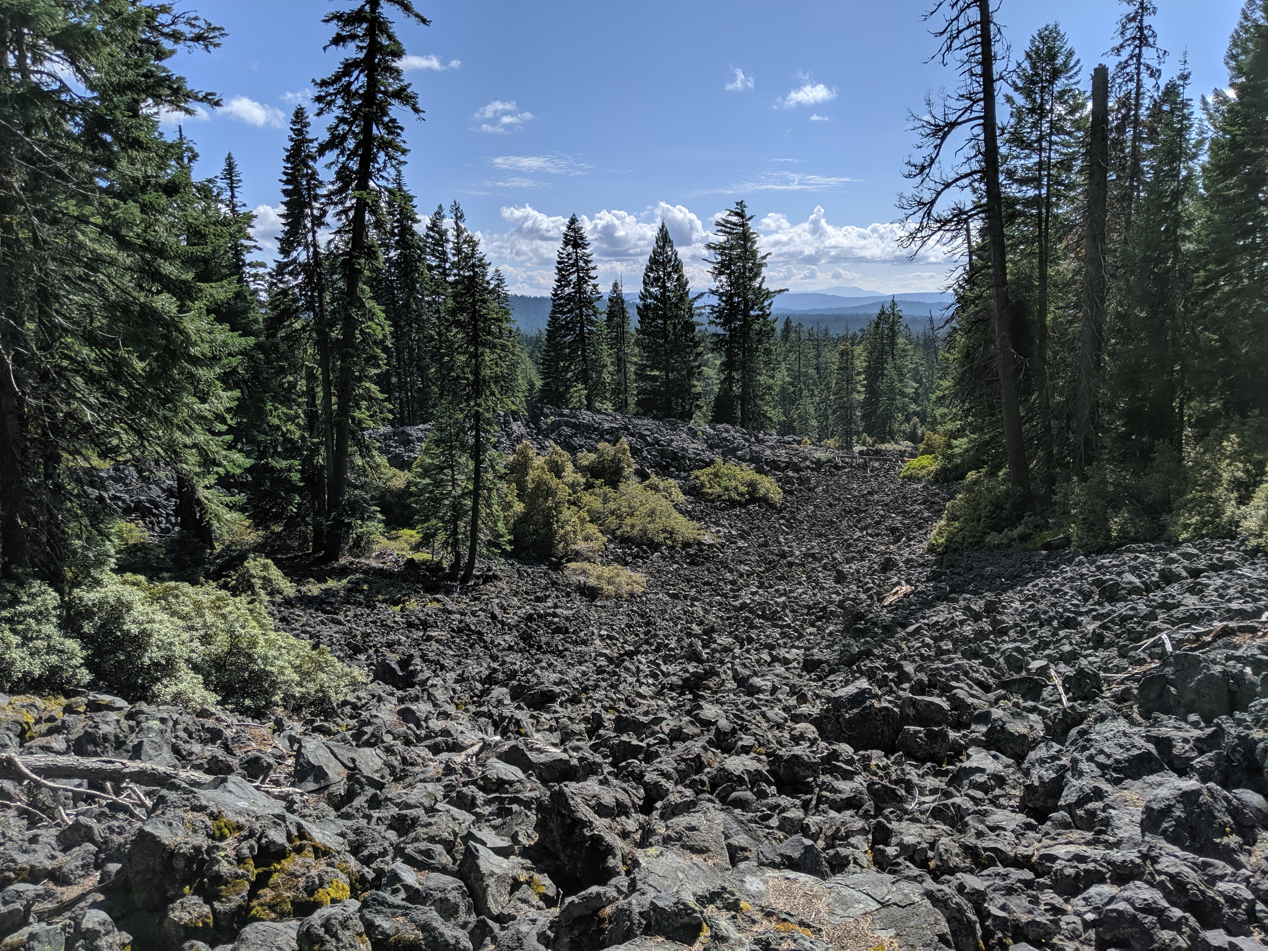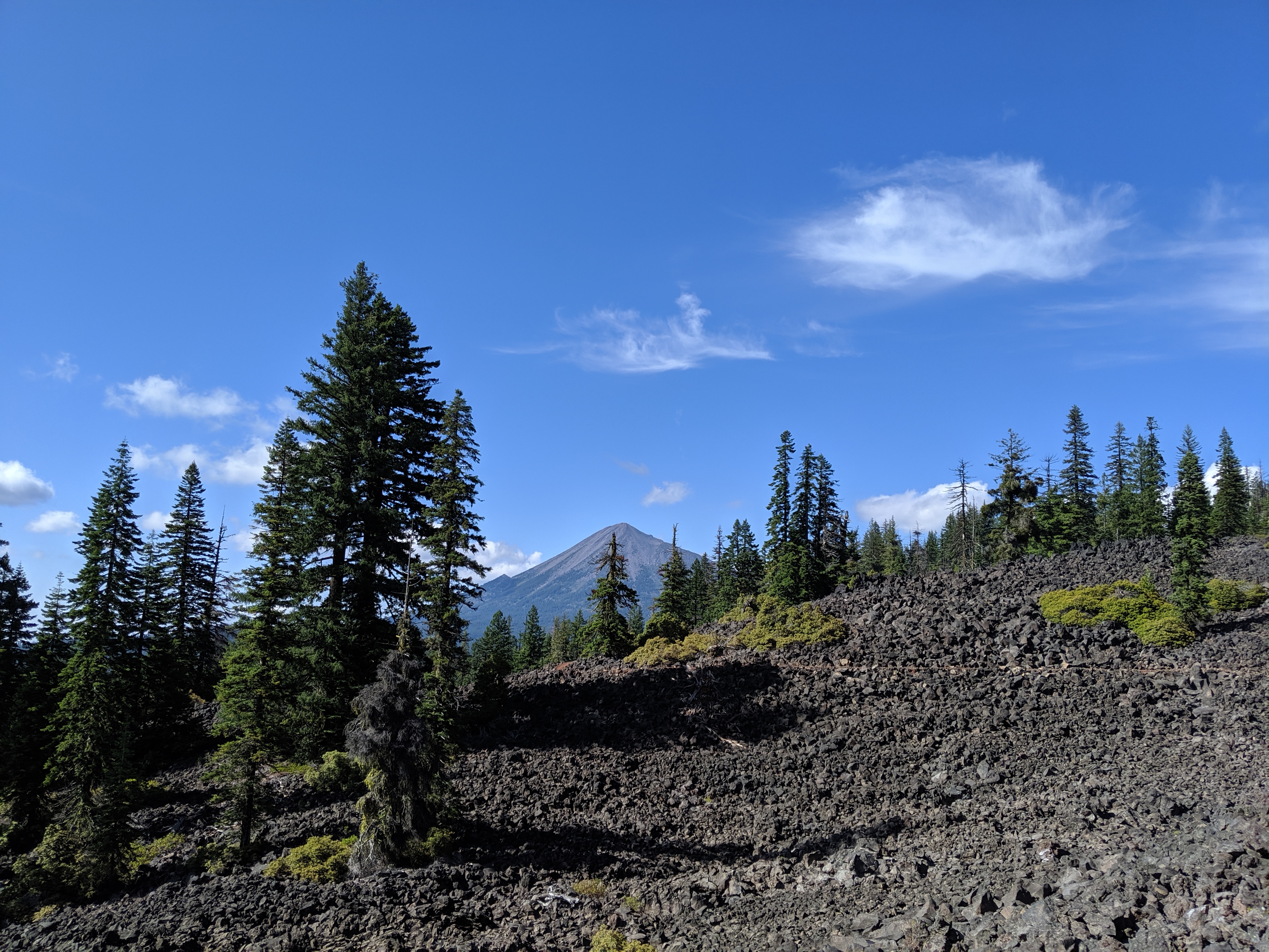 I spent the day jamming down the trail in hopes of getting to Fish Lake for resupply and a meal. It was a pretty uneventful day with two exceptions: I saw a lot of volcanic rock that was made into a trail, and then I saw what the source of the rock was. Toward the end of the day I saw Mt. McLoughlin looming ahead of me. It was the first mountain (like, mountain mountain) I had seen in a long time with no snow on it. Pretty cool and surprisingly striking.