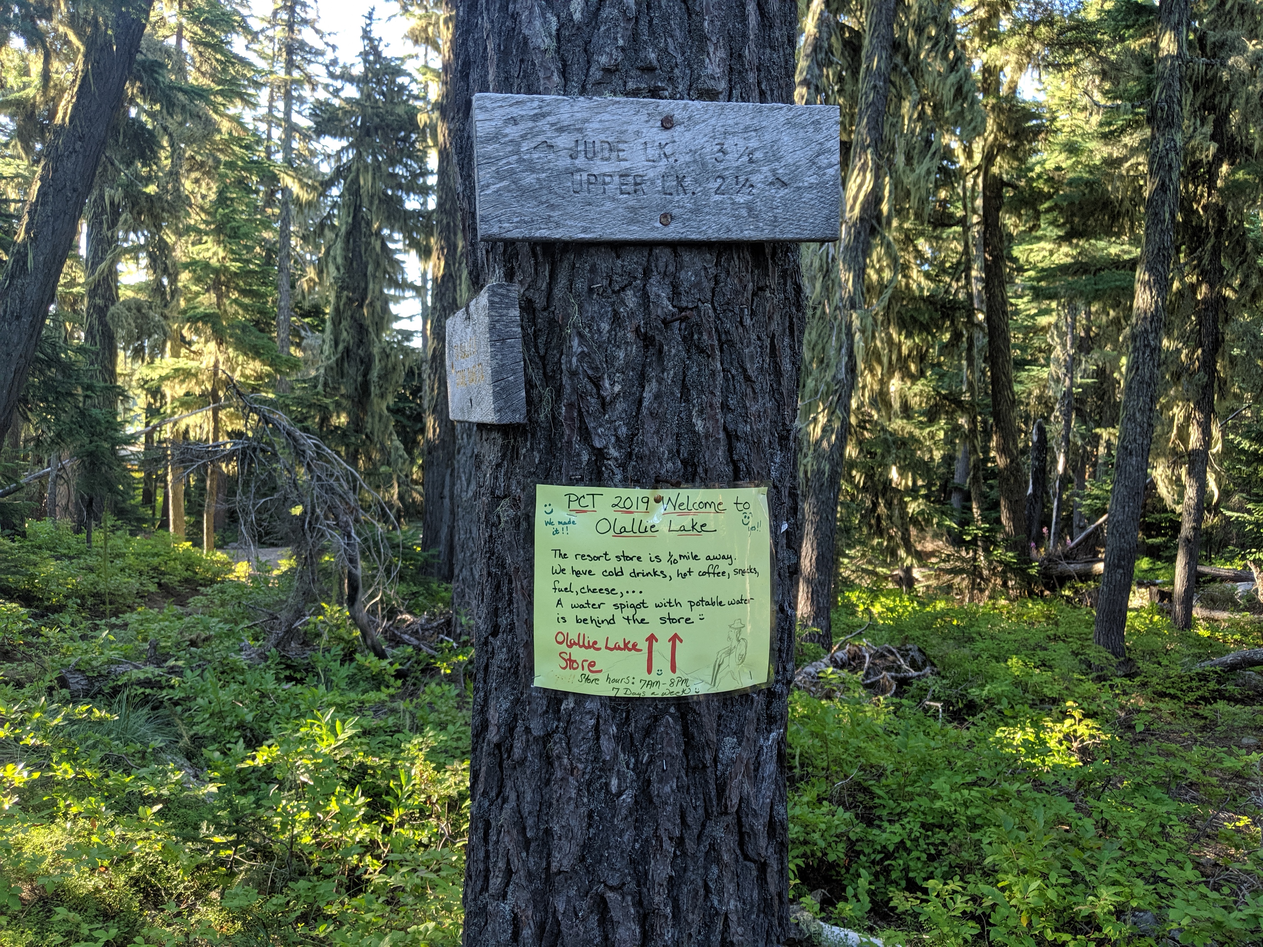 Olallie Lake is an actual lake with a small resort. Since it’s 0.1 miles off trail, I had to swing by the store and get something. I had to. There was surprisingly a big selection–enough for me to resupply off of–but it was all marked up 100-200%. This is understandable, since we’re in the middle of nowhere. I only wanted to spend $5 since I had enough food already. I made the choice to get a small pack of Oreos, a theater box of candy, and a protein bar. (I could have gotten a whole tray of Oreos for the same price, and I kinda regret not doing it.)