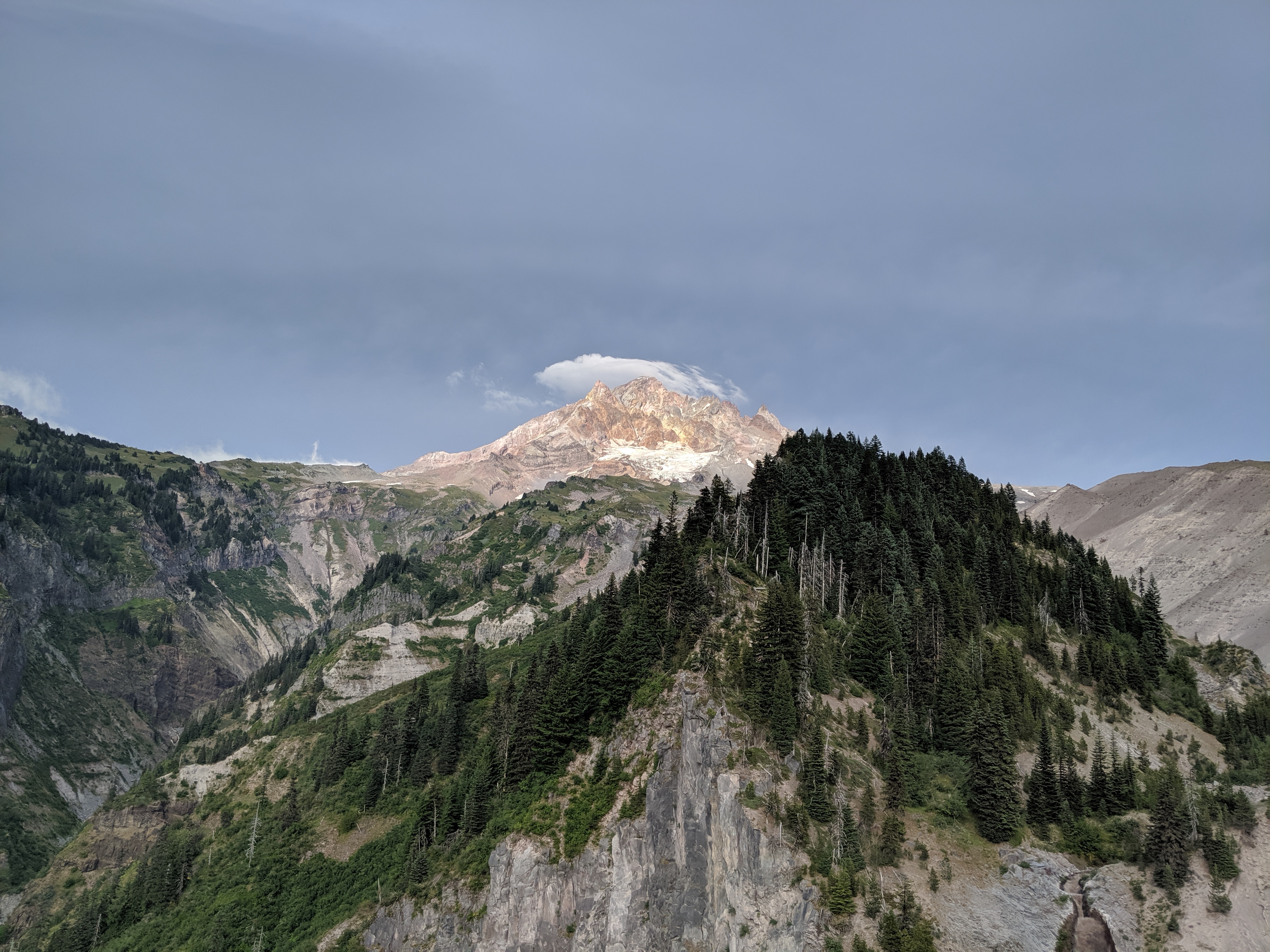 I got going shortly after 6 AM, later than I wanted. Today is essentially all the way up to Timberline Lodge at the base of Mt. Hood, and then all the way down to a good campsite 12ish miles later. I started up the climb, got to a major highway (26 I think) and saw a trailhead across the road. I took the opportunity to not dig a cathole and then got shortly back on trail. Not even a tenth of a mile later I see four ladies with a full spread of food and goodies. āHey, a thru hiker!ā one yelled. Another immediately asked if I wanted a hot dog. Sure, why not? I was planning on hurrying to Timberline for food, but I love trail magic and Iām always eager to take advantage of it. Turns out it wasnāt just a hot dog: it was a jalapeno chicken sausage with chipotle remoulade. Damn, these ladies were doing it right.