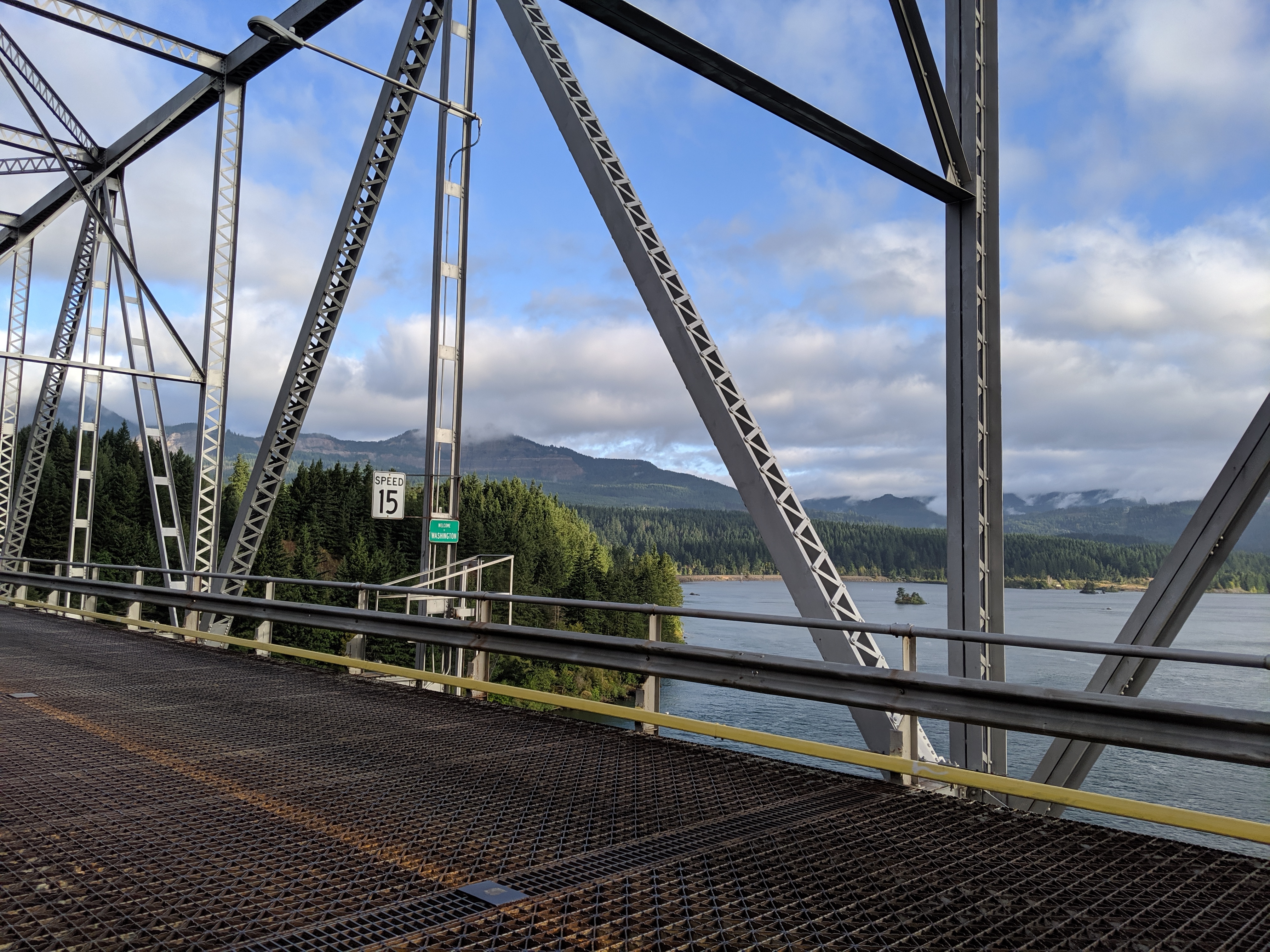 I got to the Bridge of the Gods, a large bridge for cars to cross from Washington and Oregon over the Columbia River. The PCT goes right over top of it, so as I was walking across drivers were waving at me or impatiently swerving around me.