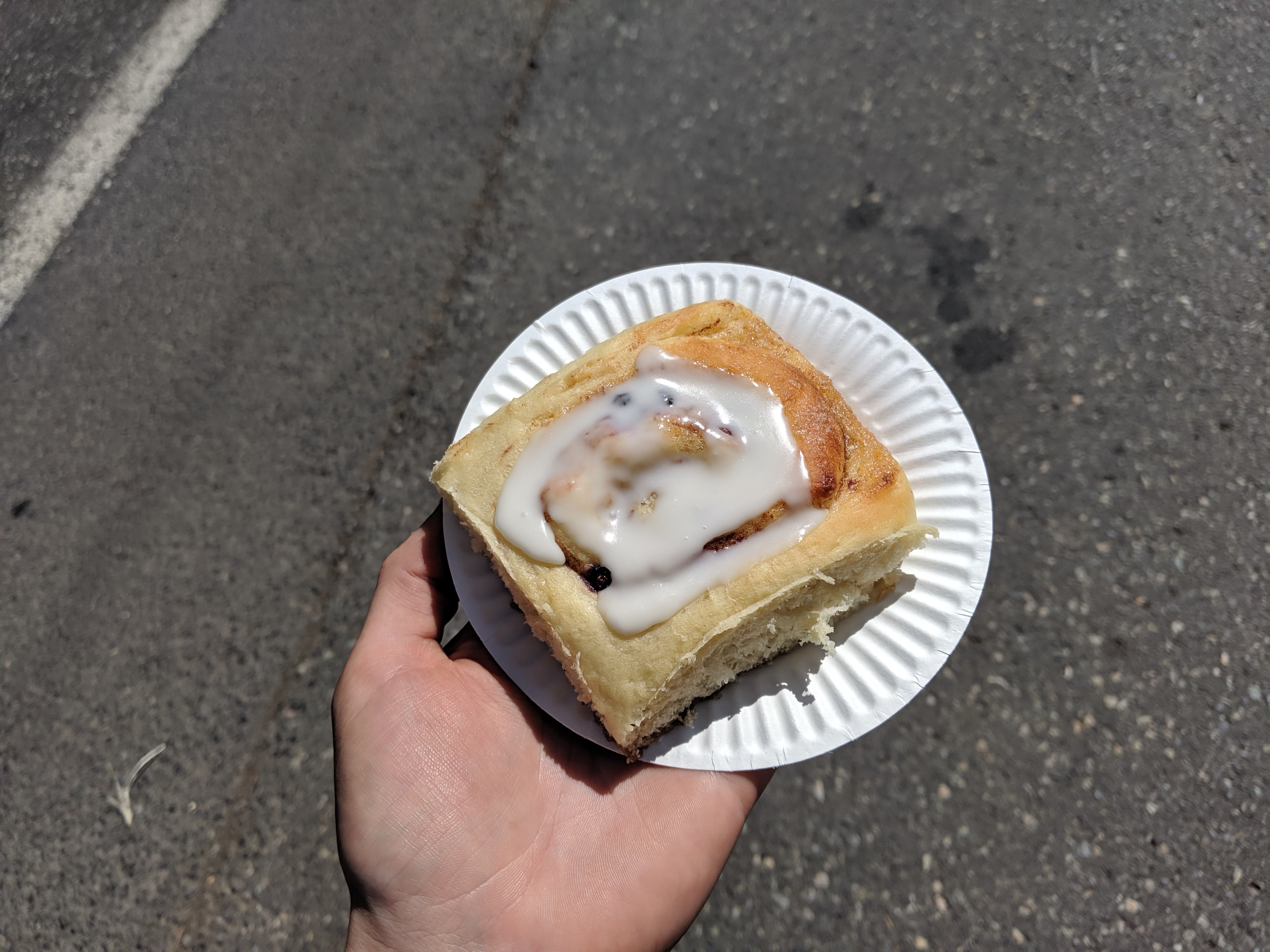 I headed to the Trout Lake Grocery to resupply and kick back. Turns out this place has a great selection of hiker foods for reasonable prices. I was able to get two days of food, a small sandwich, and a beer for $21. Deal! They told me about a community Saturday market across the street and I headed over for my second huckleberry cinnamon roll of the day.